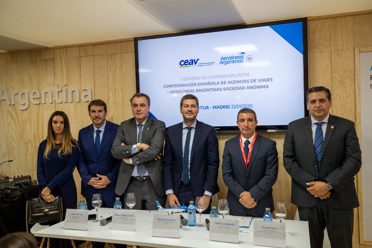Con el foco puesto en el fomento del turismo receptivo y en el marco de la FITUR, Aerolíneas Argentinas firmó un acuerdo con la Confederación Española de Agencias de Viajes (CEAV) el cual establece llevar adelante acciones conjuntas entre la línea aérea de bandera y operadores turísticos españoles.
