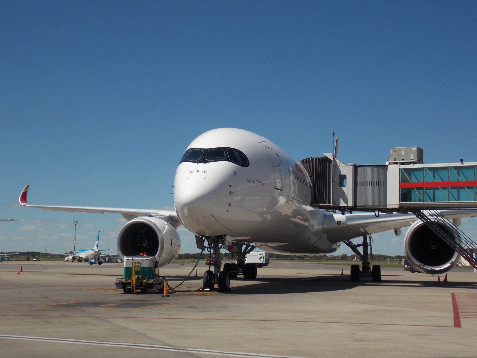 El pasado 26 de Febrero Iberia presentó en el Aeropuerto Internacional de Ezeiza su flamante Airbus #A350-900, con matriculo EC-MXV, bautizado con el nombre ‘’Placido Domingo’’. El hito de este evento es que es la primera vez que opera en la región este tipo de aeronave. De esta forma y como novedad, tendremos la presencia del #A350-900 en una de las dos frecuencias diarias en la ruta Buenos Aires – Madrid.