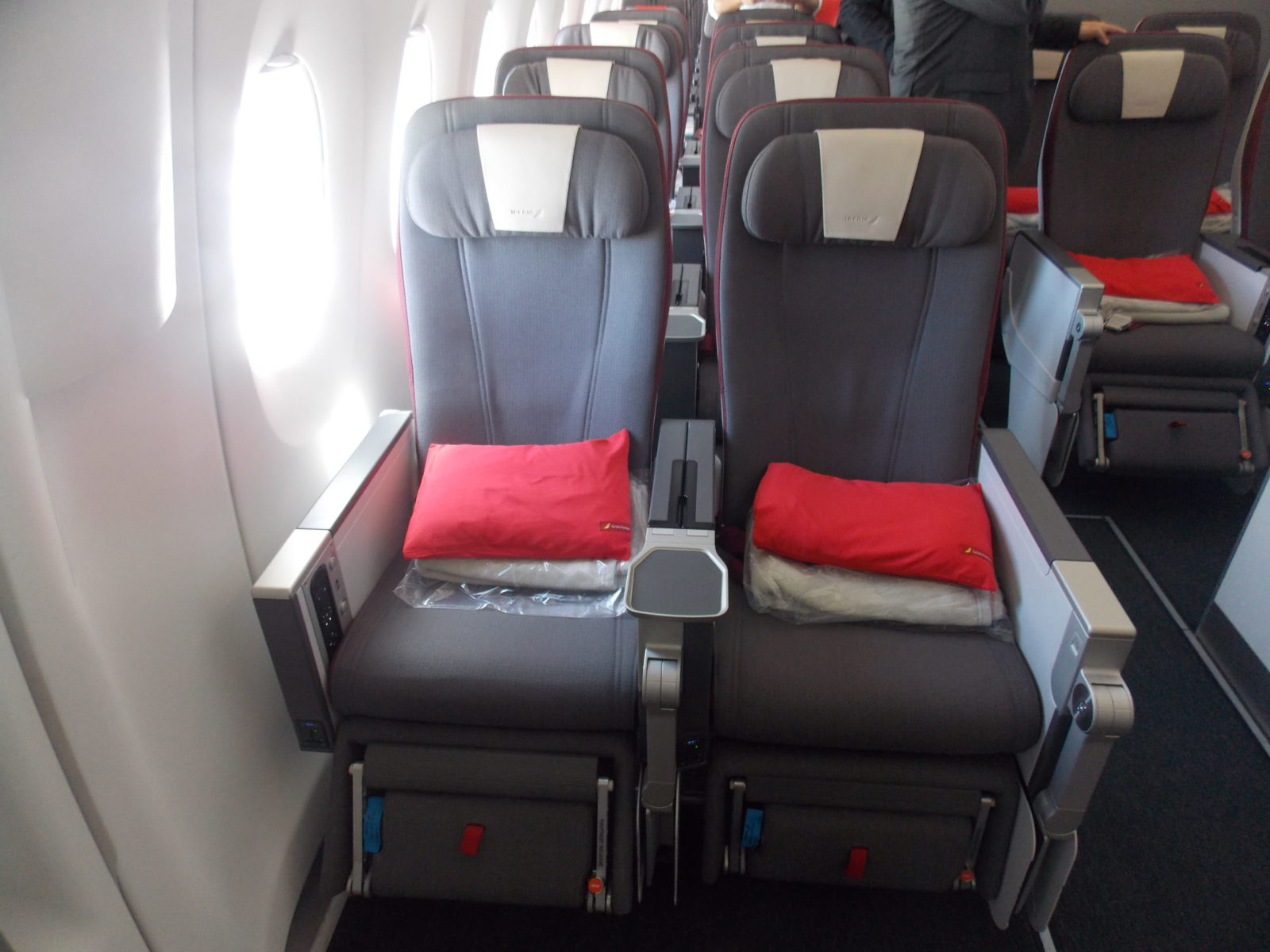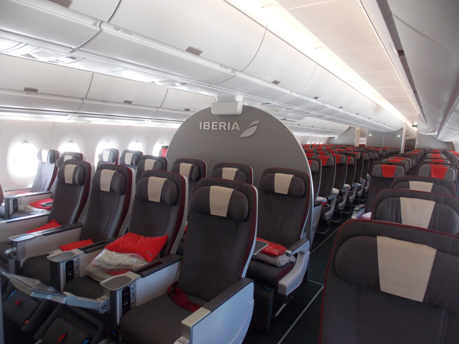 Iberia ofrece en el A350 tres cabinas: Business, Turista Premium y Turista. La aerolínea introdujo el año pasado en la ruta Buenos Aires – Madrid, la Turista Premium (ver foto abajo), una cabina intermedia dirigida a un turismo de mayor gasto, y otros segmentos como pequeñas empresas y emprendedores o viajes de novios.
