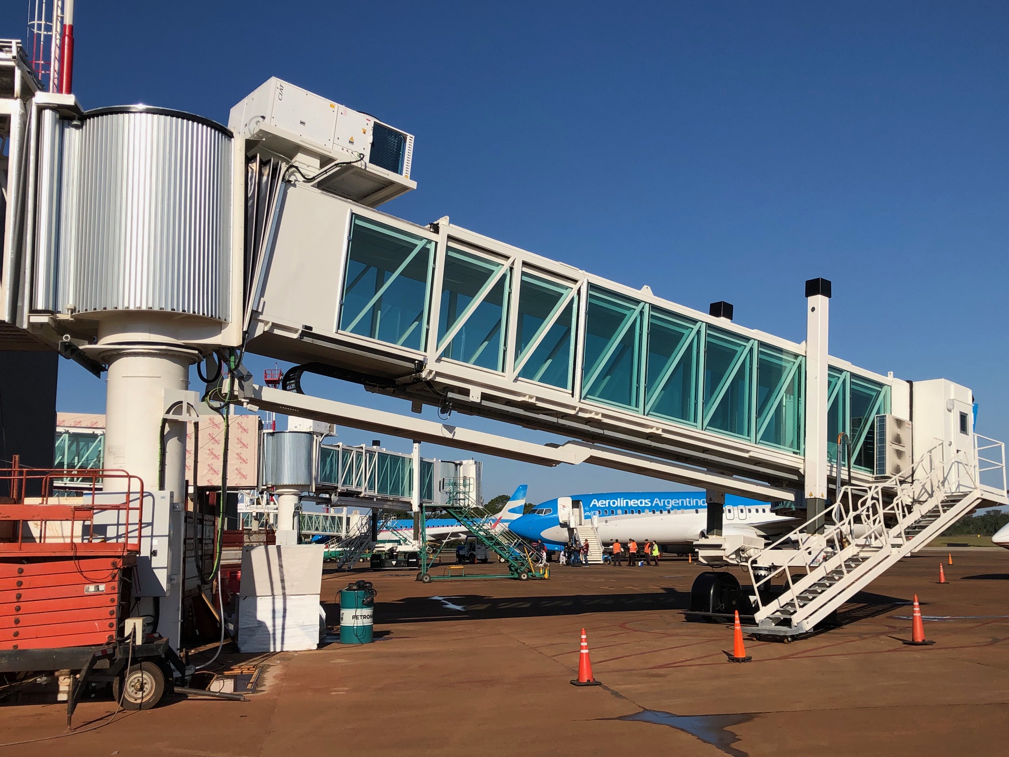 Aeropuertos Argentina 2000 instalará dos nuevas mangas de embarque de aeronaves, como parte de la obra de la nueva terminal de pasajeros que lleva adelante junto al Ministerio de Transporte de la Nación. Mañana comenzará a operar la primera nueva manga para embarque de aviones.